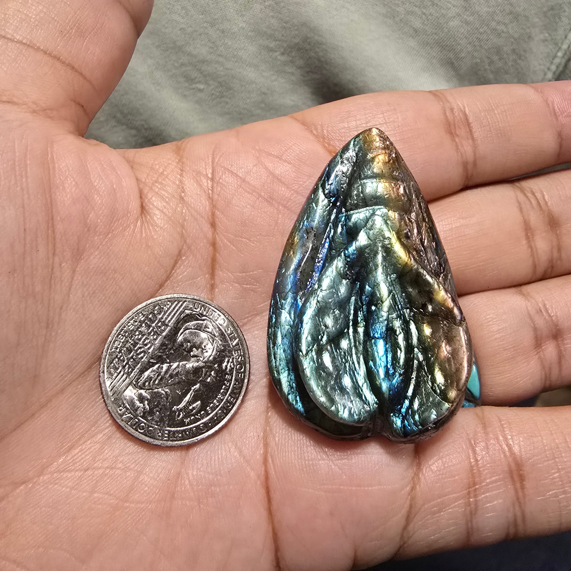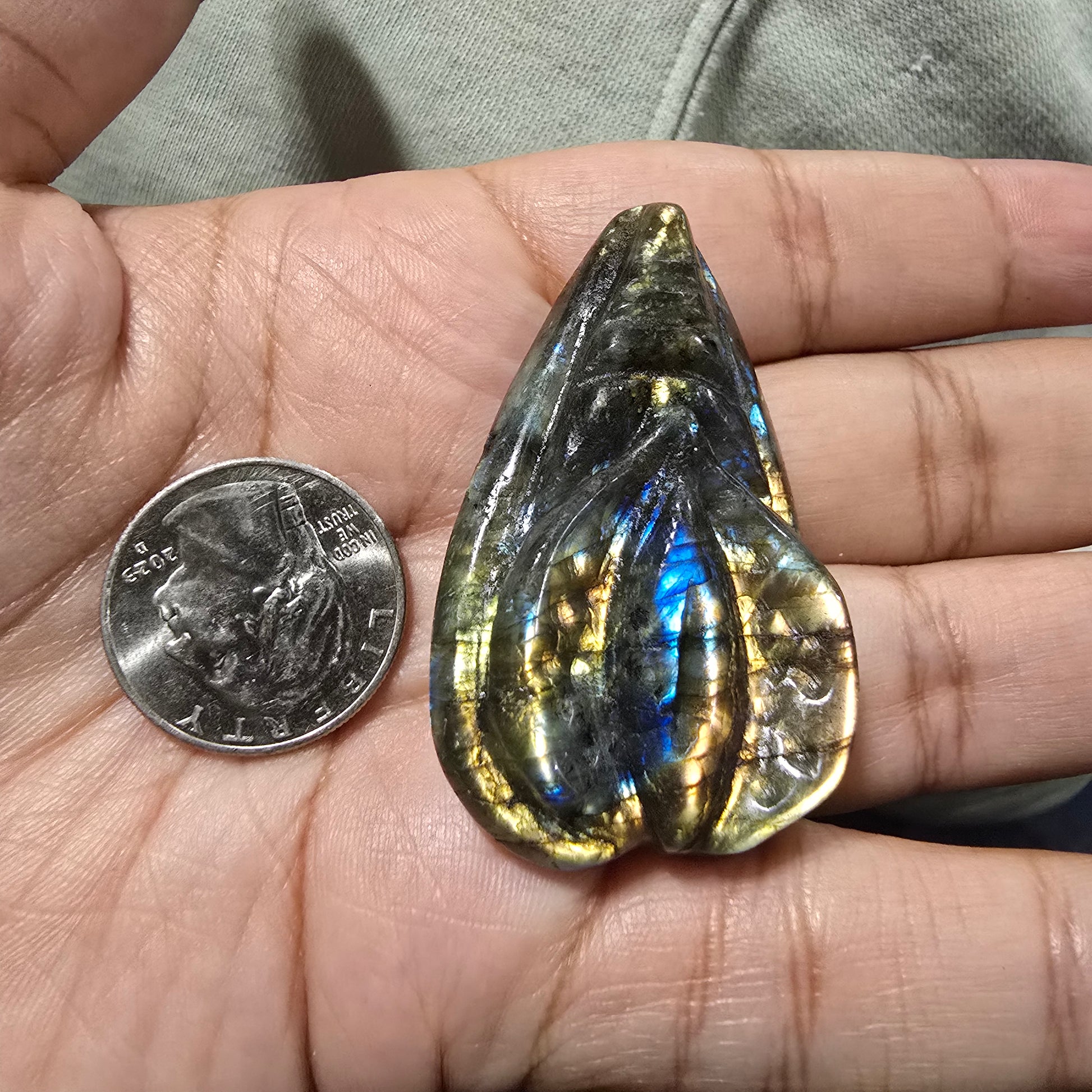 Experience the power and beauty of Cradle of Life, crafted with sparkling labradorite crystal for maximum energy and radiance. Its natural iridescence shines in a variety of shades from green to blue to yellow and orange, offering a stunning full flash of color. Perfect for enhancing any space.