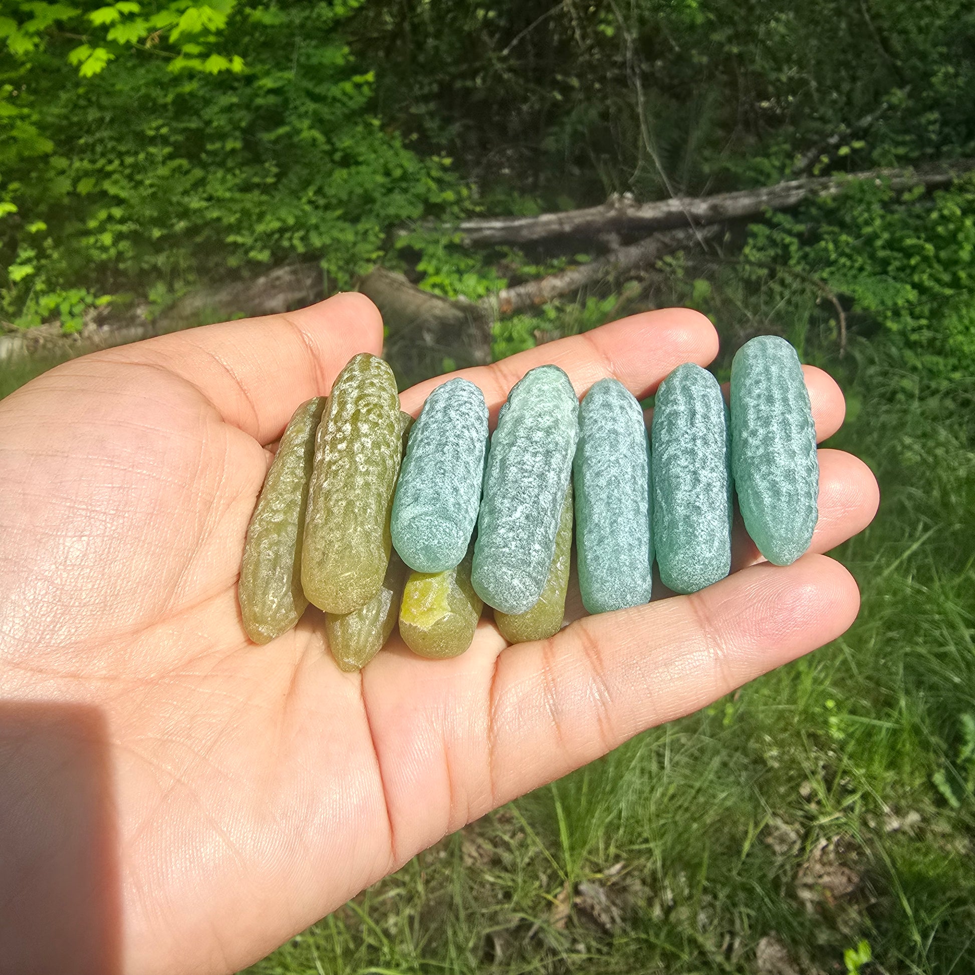 Green adventurine and Green jade shaped pickles!