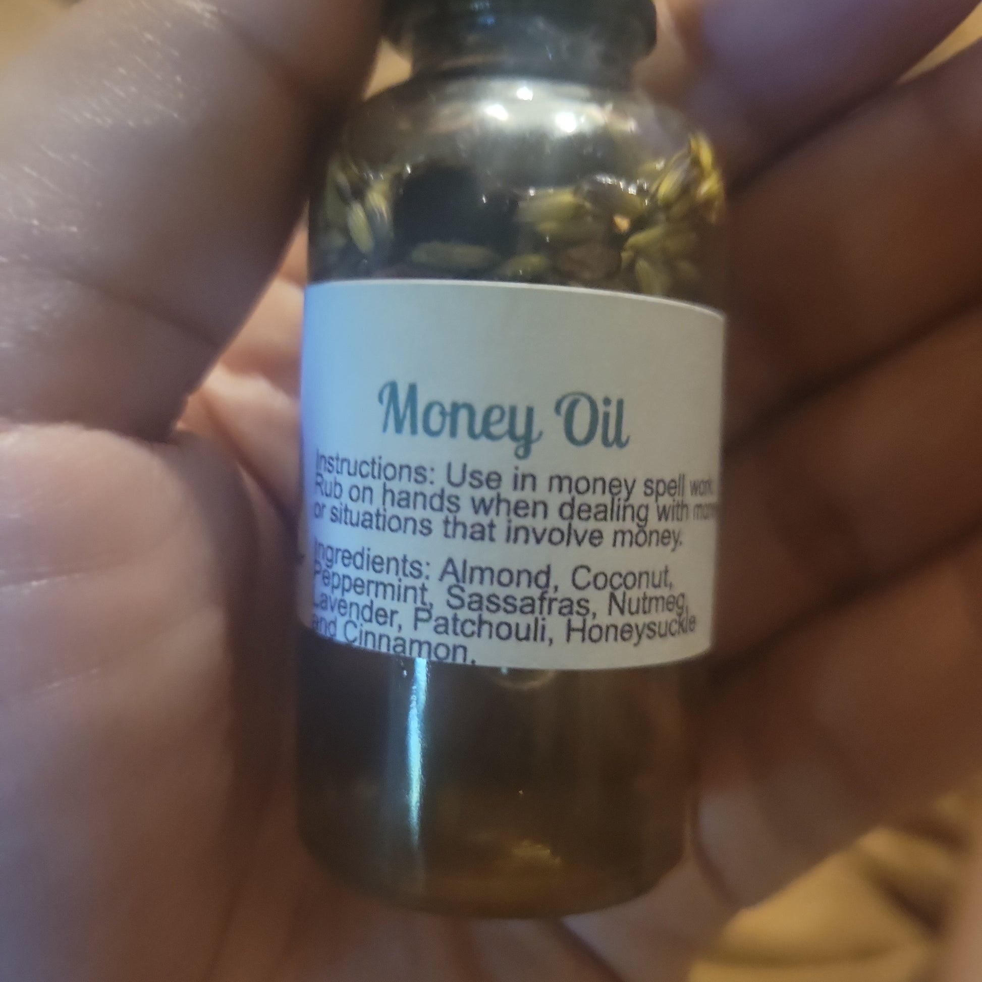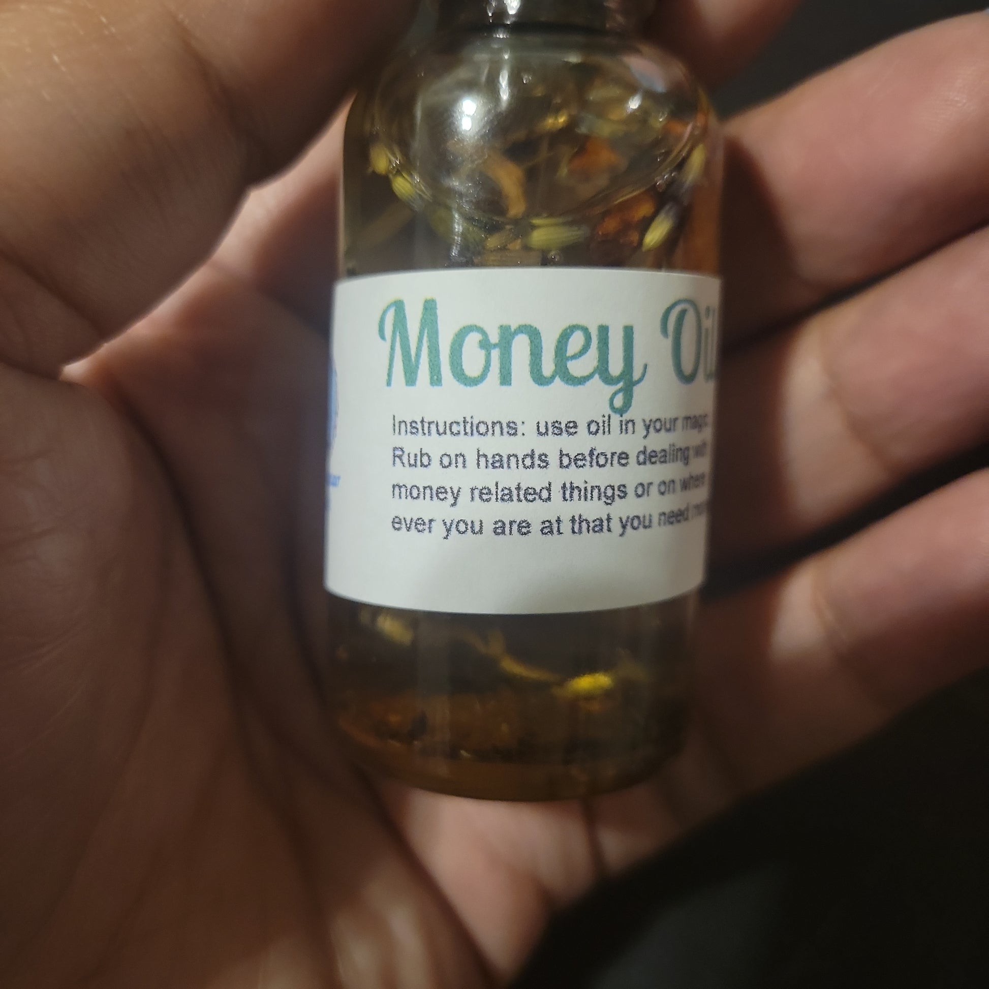 Money oil is to be use for money spell work or out and about to receive money.