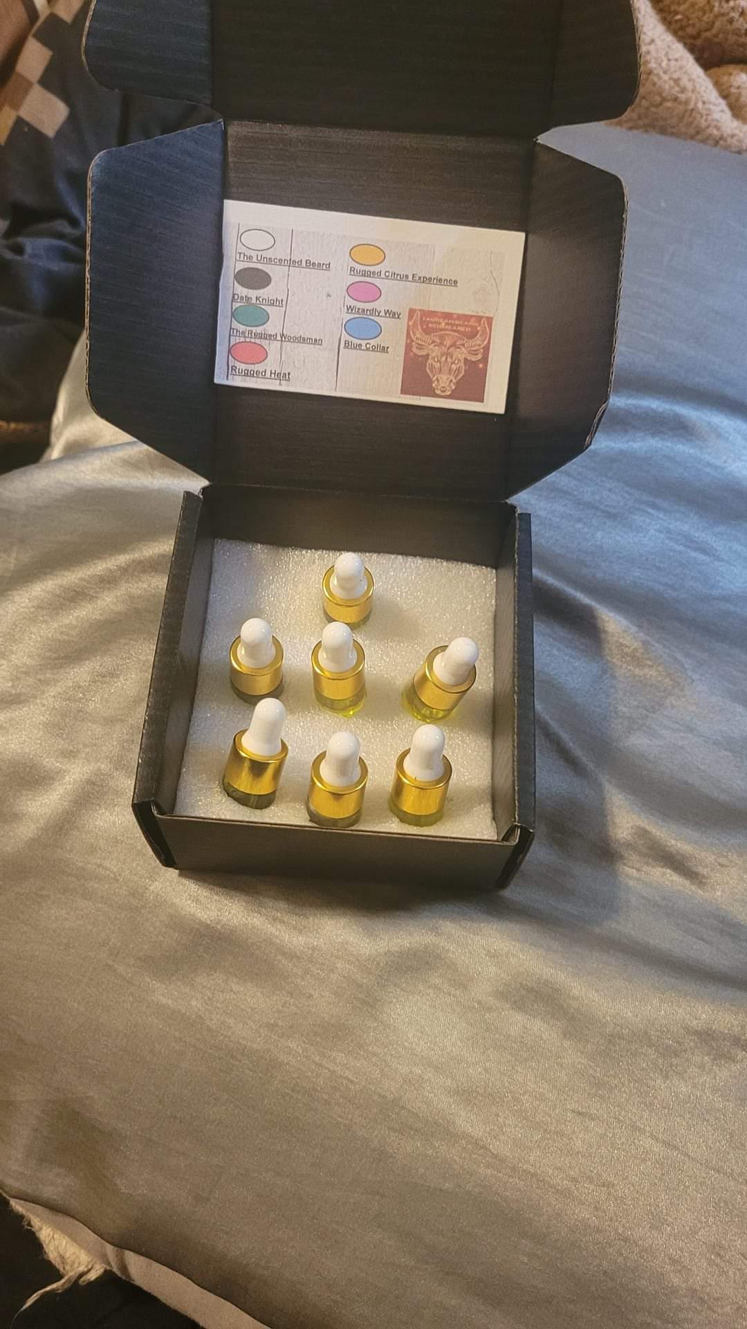 Sample box comes with all scents to try in 1 mL dropper bottles.